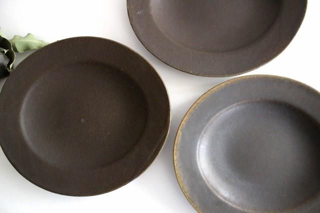 シックな色味がステキな、錆釉の楕円リム皿です。