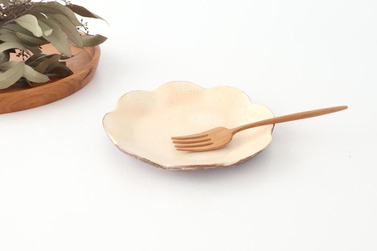 やわらかな風合いが人気の高い、粉引の輪花皿です。