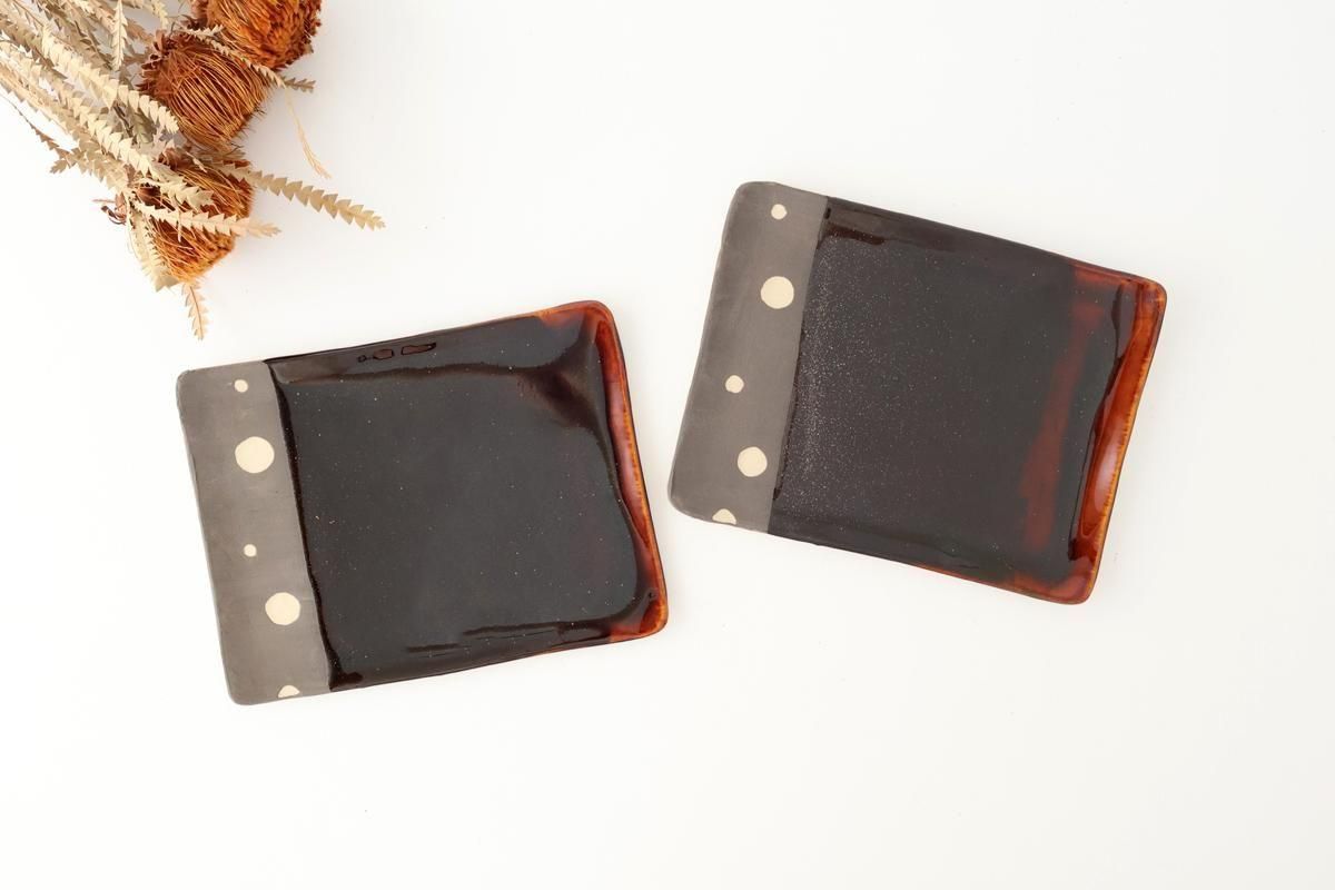 艶やかな飴と、マットな質感にドットの柄が入った、ツートンのプレートです。