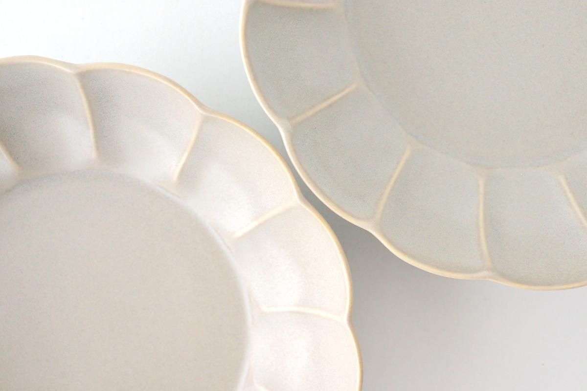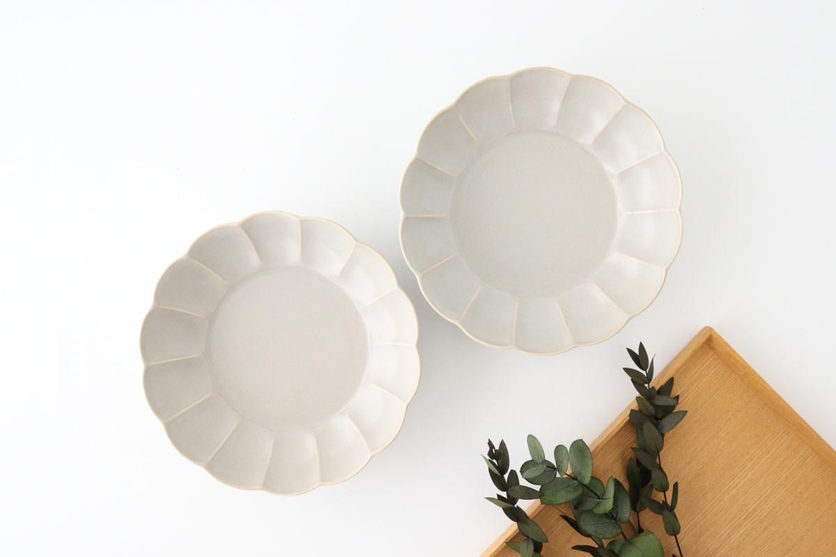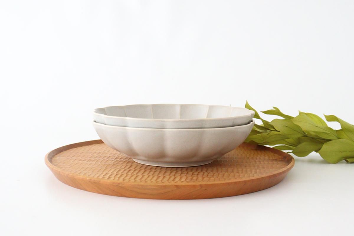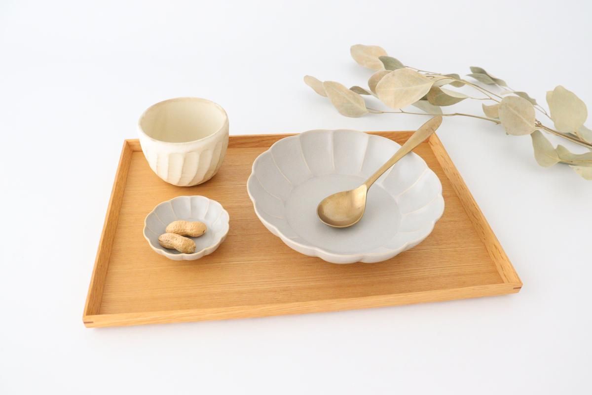 マットな質感で、丸みを帯びた花びらがポイントの平鉢です。