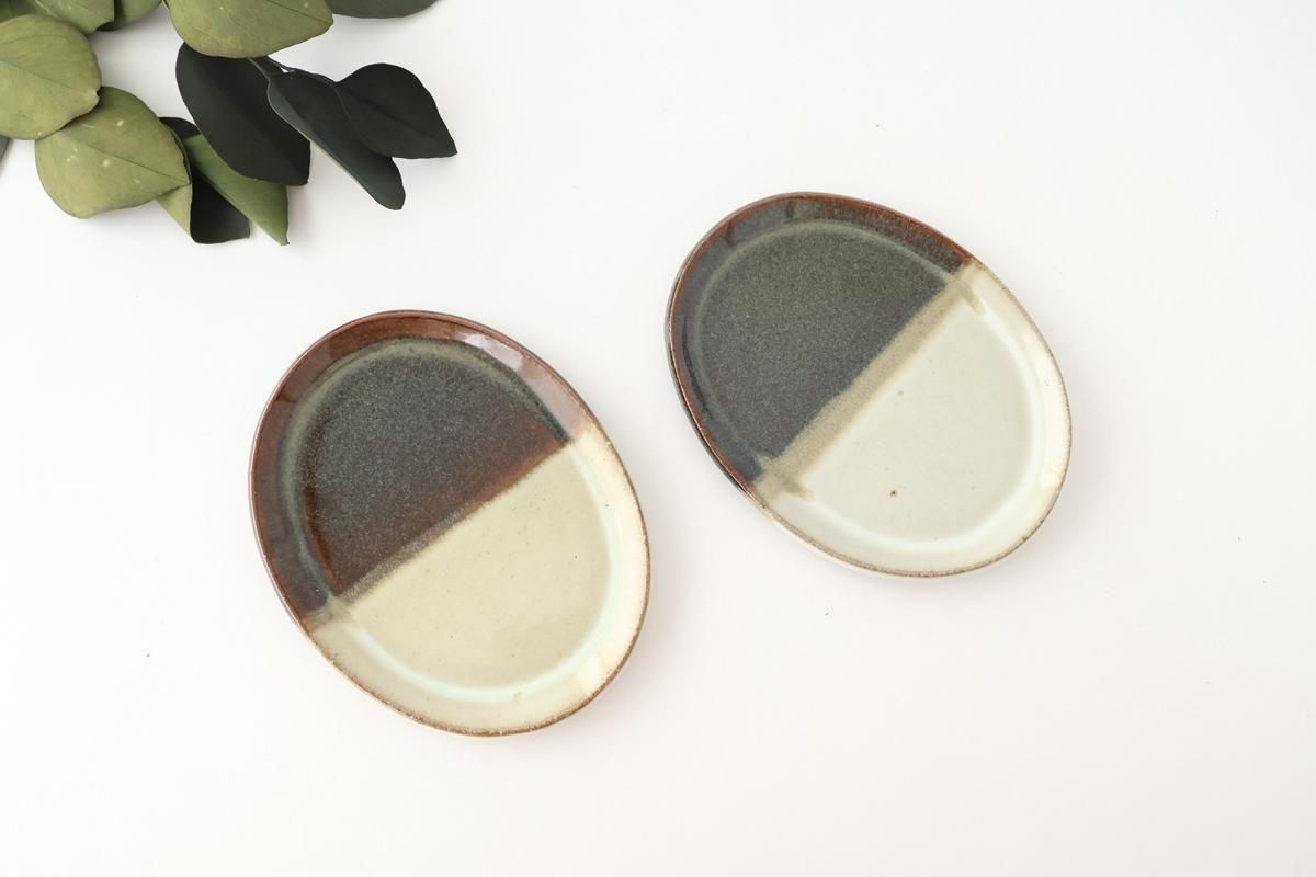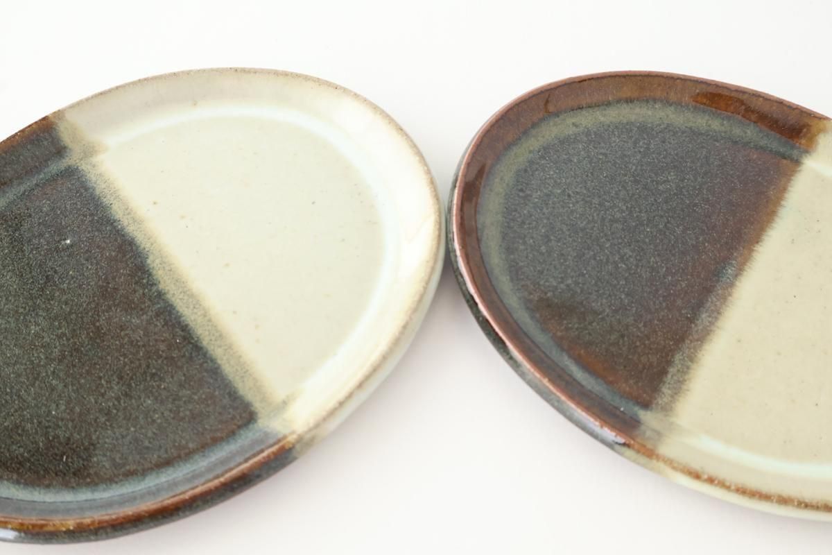 左右に掛け分けられた、2色の釉薬を使った「掛け分け」という技法で作られています。
