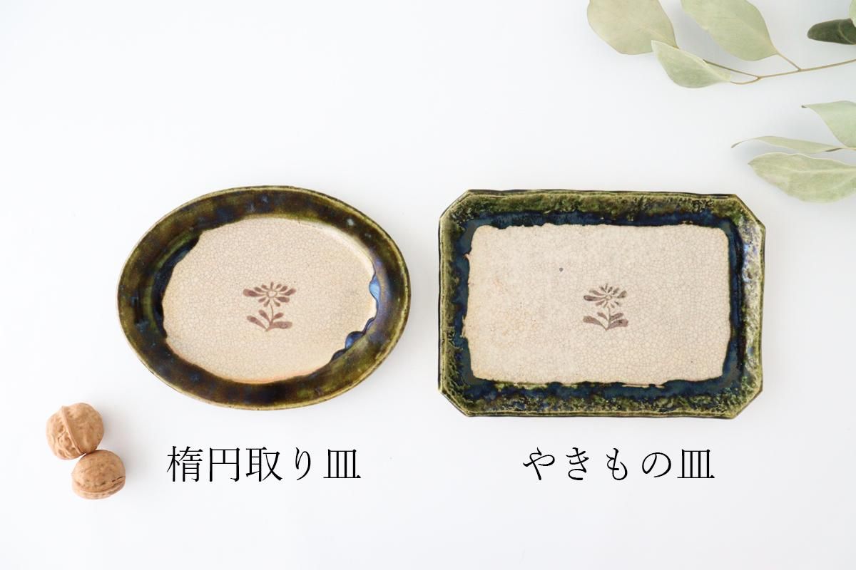 織部釉の苔むしたような深緑が美しく、うつわ全体に広がる貫入が味わい深さをプラス。