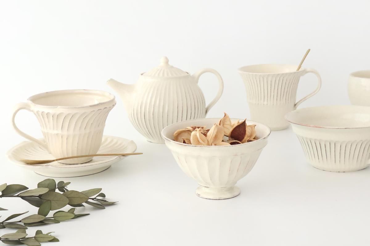鎬や面取りといった、丁寧な手仕事の美しさが光る粉引のうつわは、ながく大切に使いたくなる魅力があります。