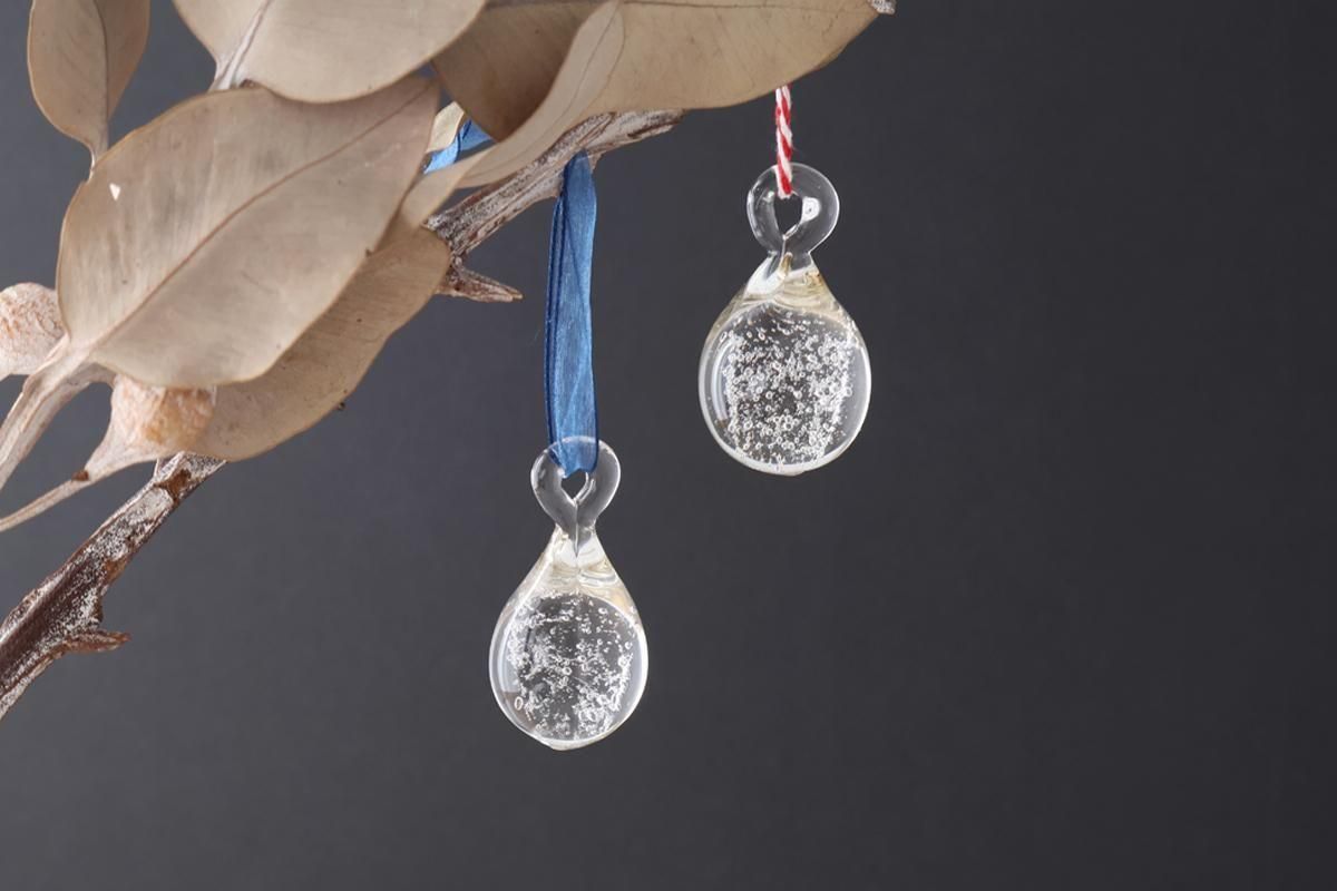 ふっくらとした雫の形の、ガラスのオーナメントです。
