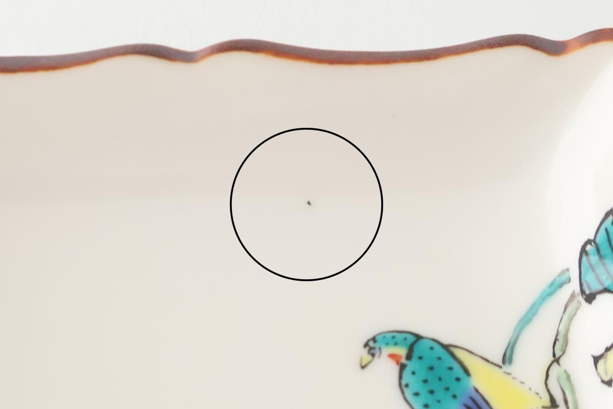 九谷五彩(赤・青・黄・紫・紺青)を基調とした華やかな絵付けが特徴です。