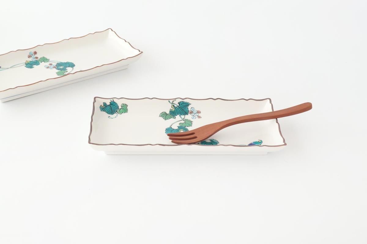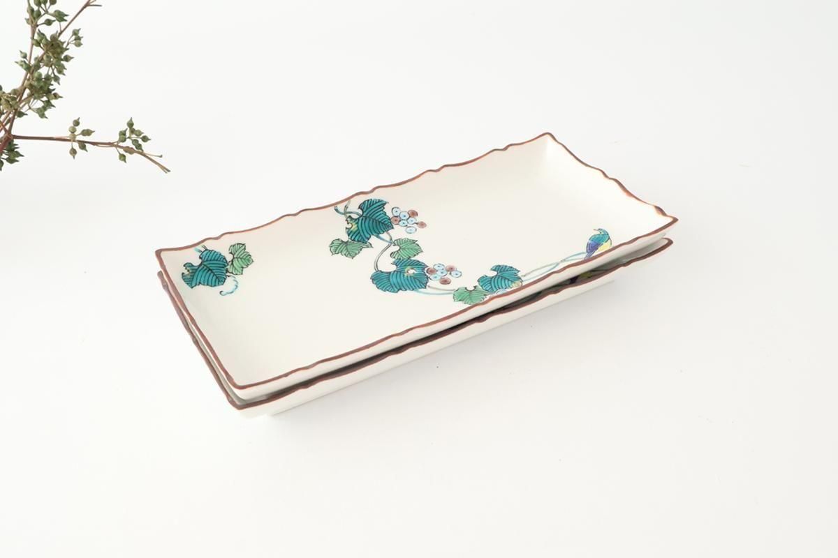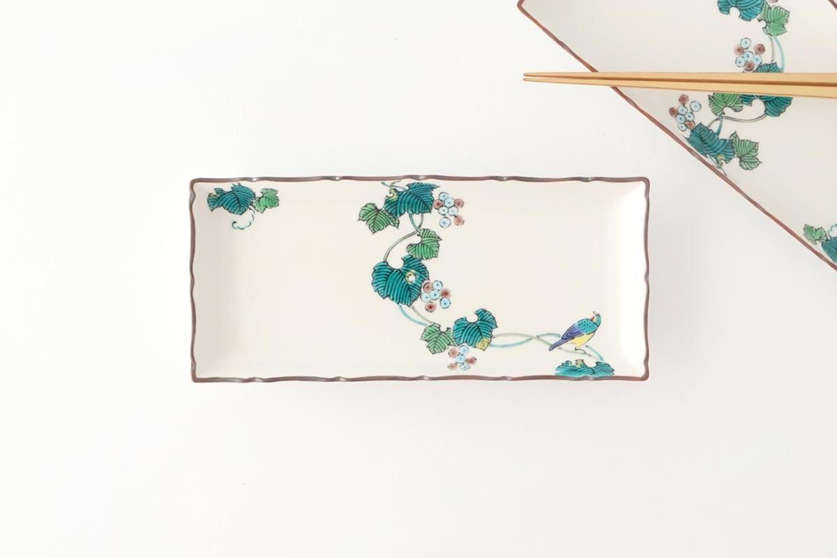 波打つ縁と、余白を残して描かれた、青々とした蔦の葉が印象的。
