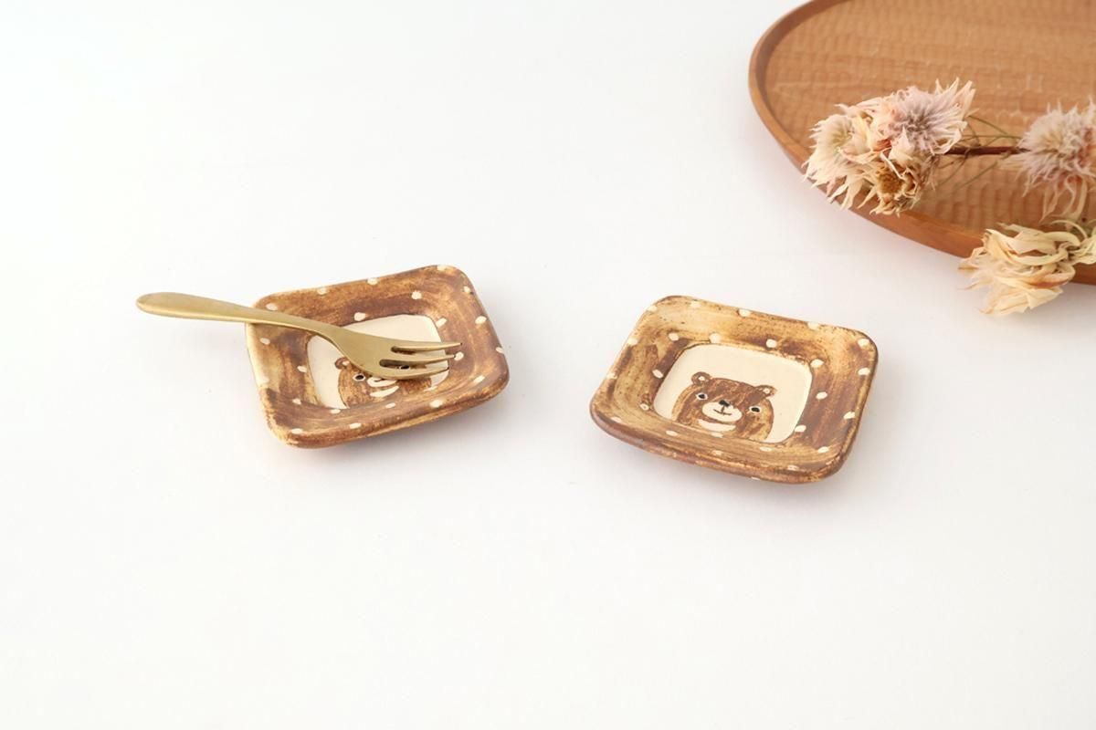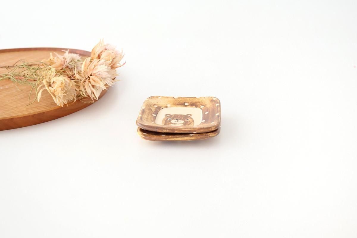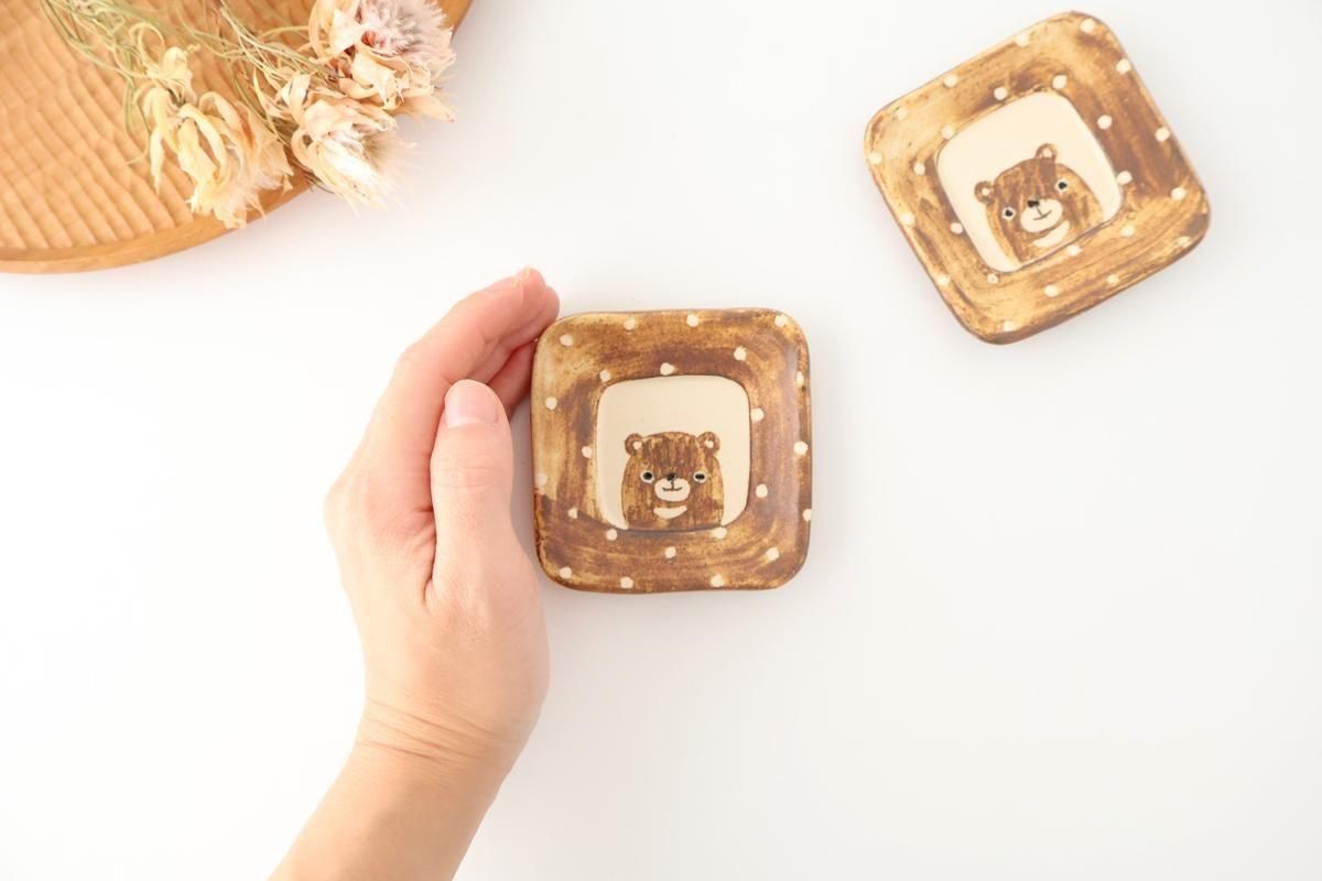 ひょっこり顔を出すクマがポイントの、豆皿です。
