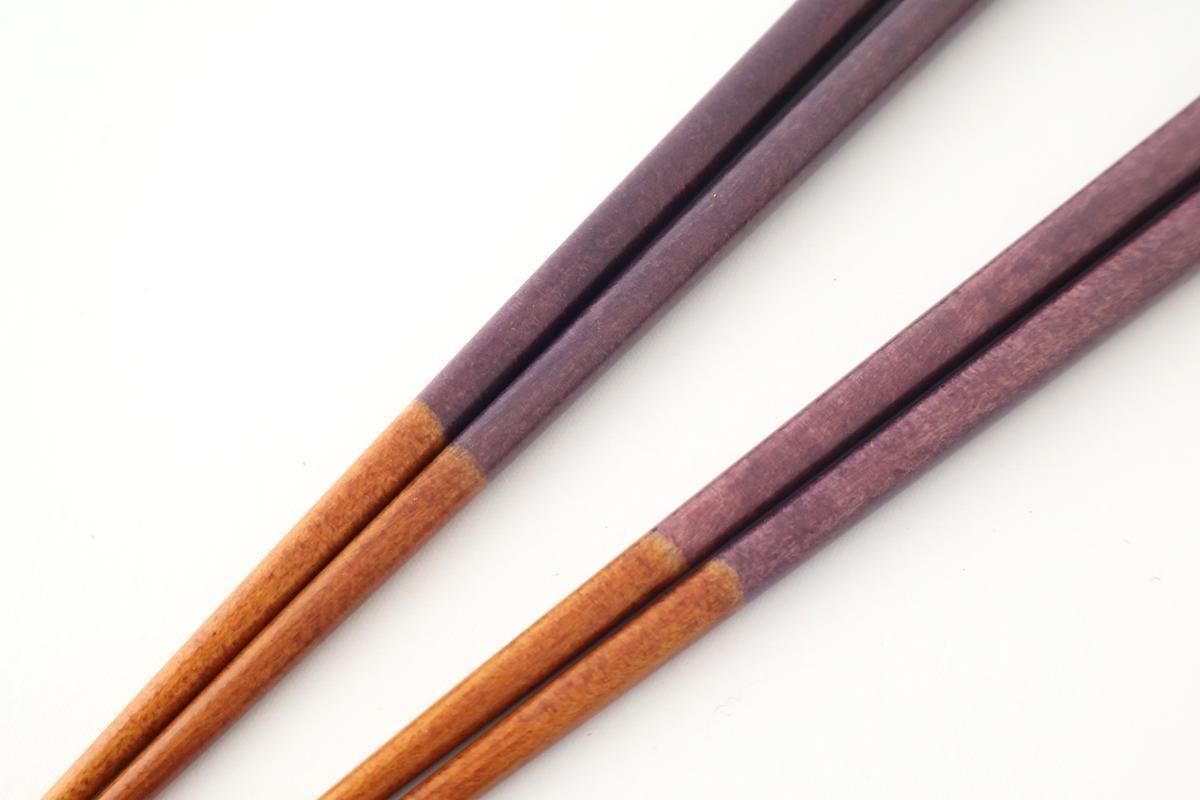 ひとつひとつ、色の出方や大きさ、形が少しずつ異なり、全く同じものがないところが手作りのお箸の魅力です。