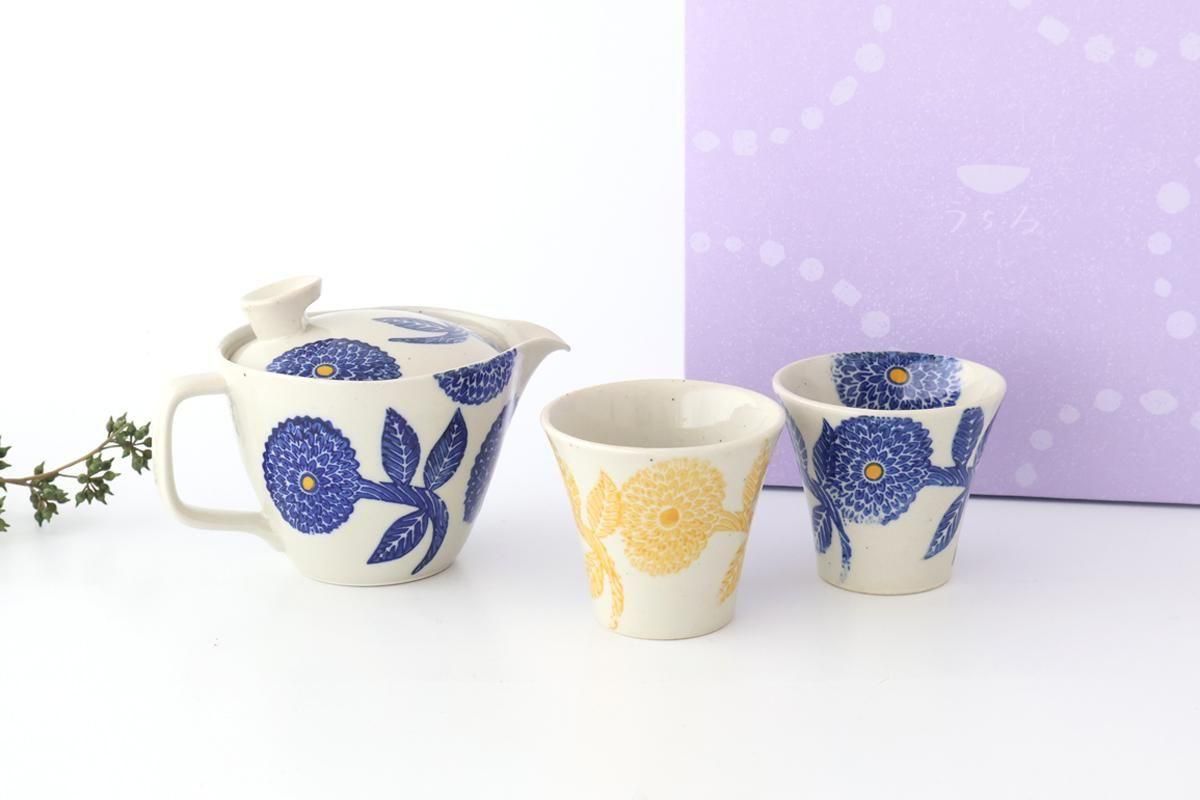 【3点セット】【お茶時間を楽しむ】ポット&ミニカップ ダリア 青×黄 うちるセレクト