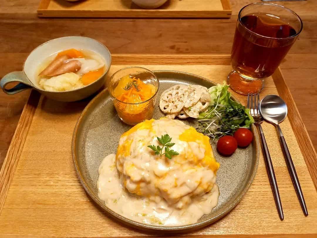 いつものうつわをトレーにのせるだけで、一気にまとまりのあるテーブルコーディネートになりますよ。
