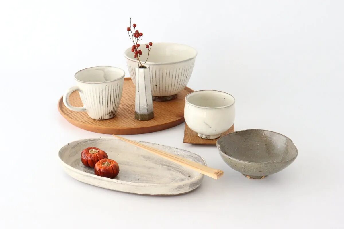 小石原焼らしい、刷毛目のうつわのほか、