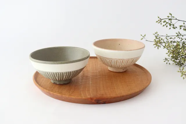 グレーとピンクの落ちついたトーンのお茶碗セットです。