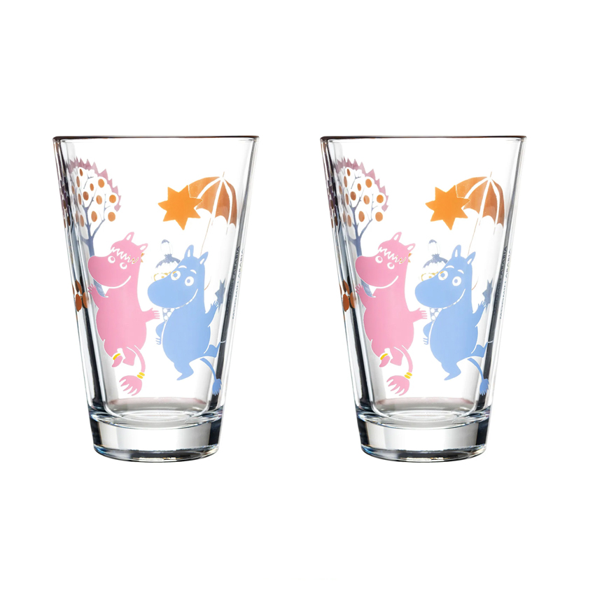 ムーミンやリトルミイが、楽しそうに歩く姿が描かれたタンブラー。