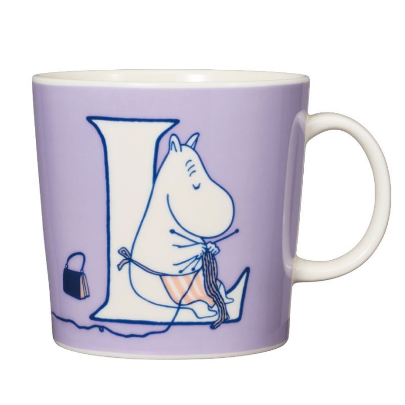『L』マグは、ムーミンママが靴下を編む姿がほっこりと癒やされます。
