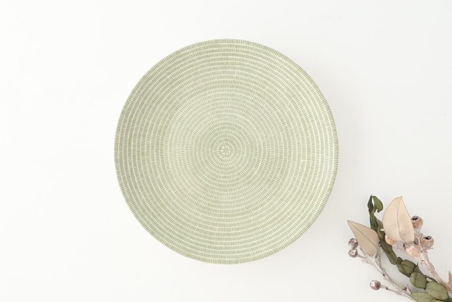 落ち着いたトーンのグリーンは、和食器やベトナムのバッチャン焼などとも相性が良く、幅広いジャンルのお料理にマッチします。