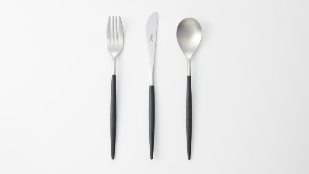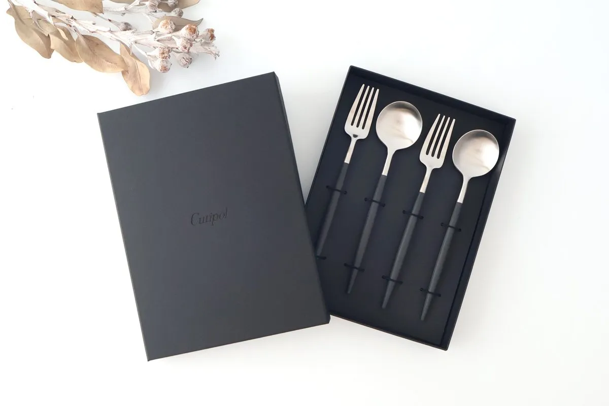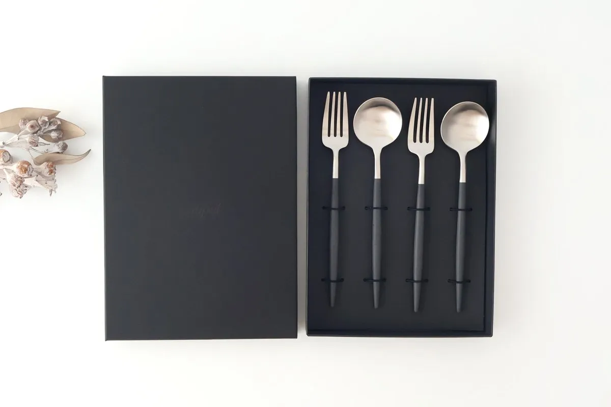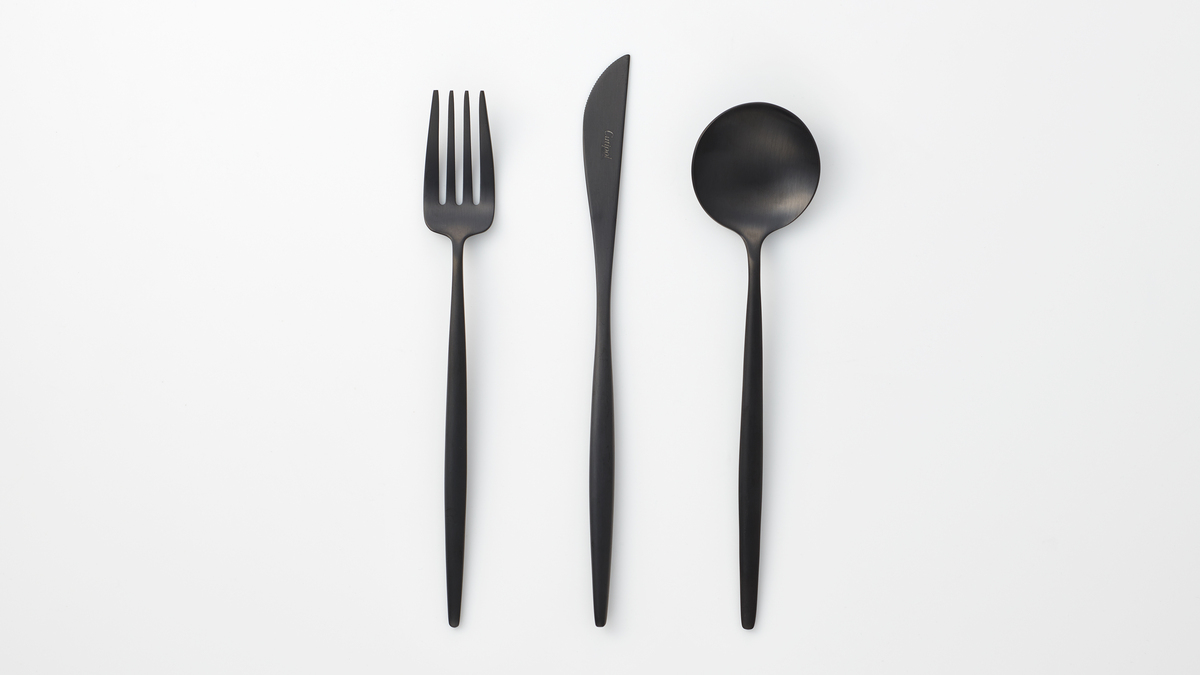 ブラックとシルバーのモダンな色使いのカトラリーセット。