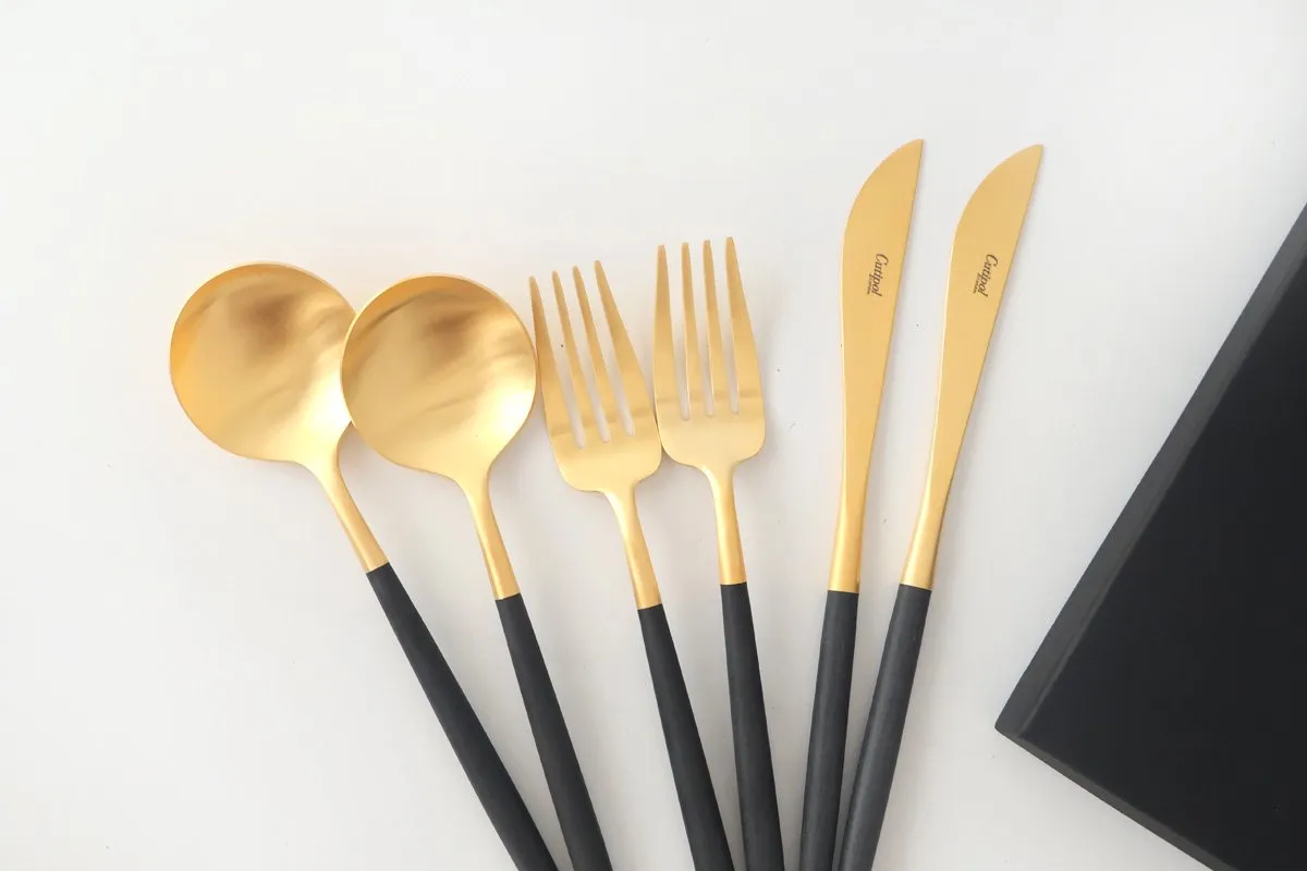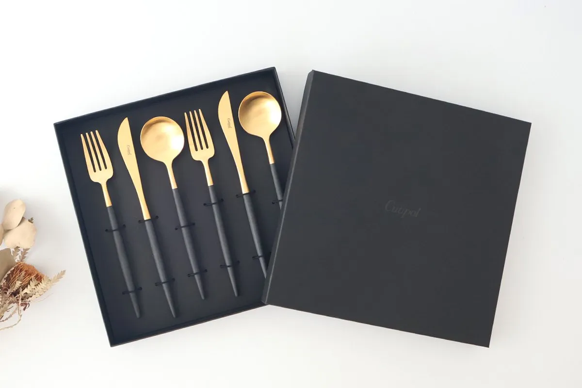 シックでラグジュアリーな「ブラック×ゴールド」のディナーカトラリーセットです。