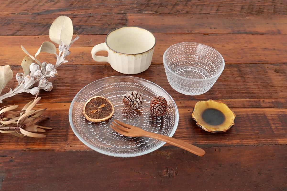 クリアなガラス製なので、他の素材の食器とも相性が良く、コーディネートしやすいのもポイントです。