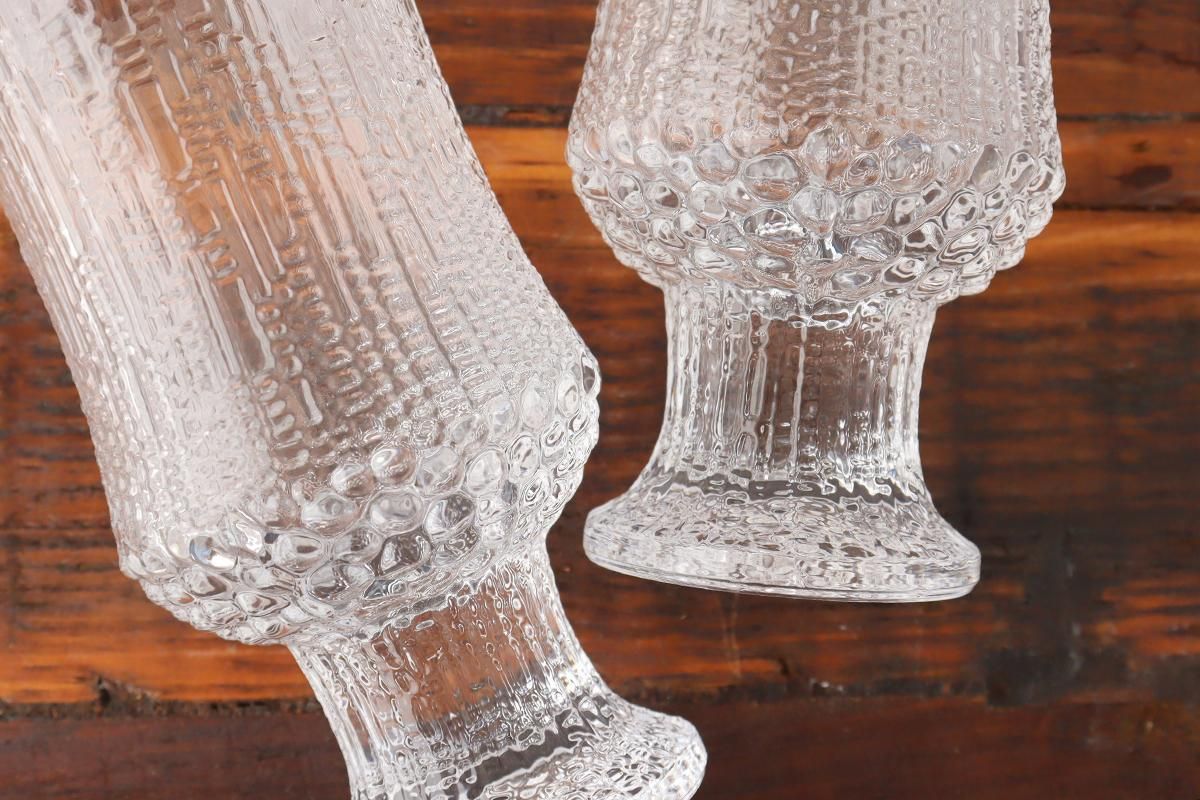 ヴィルカラが過ごした、ラップランドの氷が溶ける様子にインスピレーションを得た独特のデザインのグラスは、美しいだけでなく実用的。