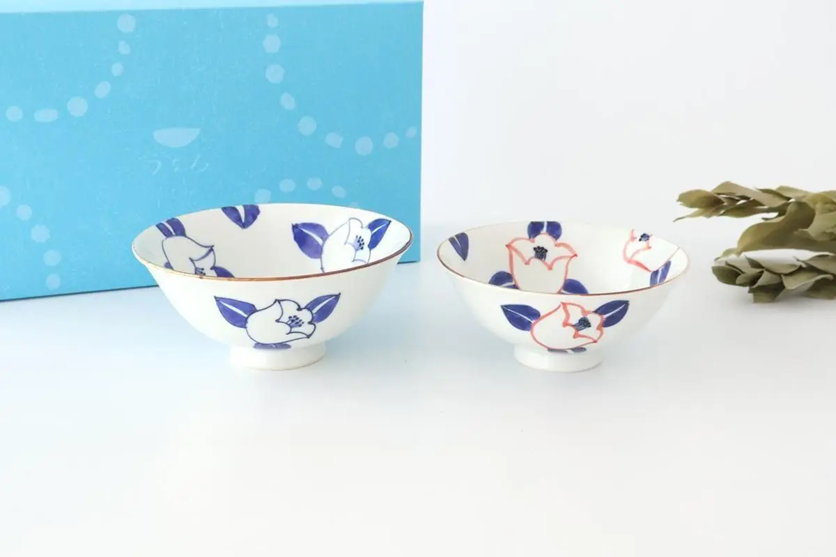【2点セット】【夫婦で使ってほしい】飯碗 椿花紋