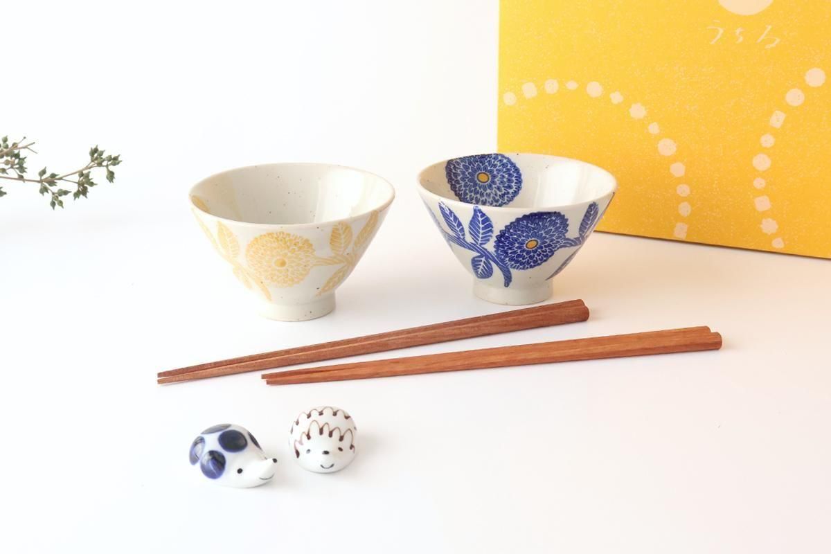 プレゼントにぴったりな、飯碗とお箸、箸置きが入ったペアセットです。