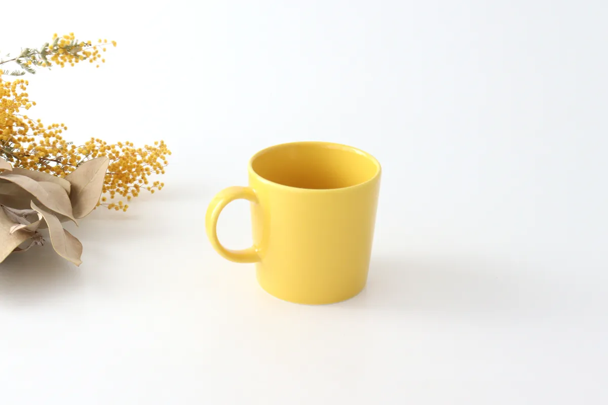 黄色のマグカップがあることで、食卓が明るくなりますし、テーブルのアクセントになります。