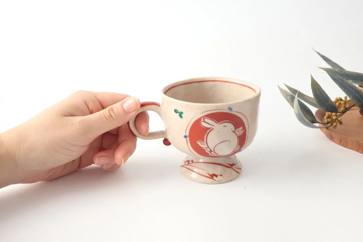 - 1.4 高台マグ 赤絵うさぎ 陶器 蔵珍窯 美濃焼