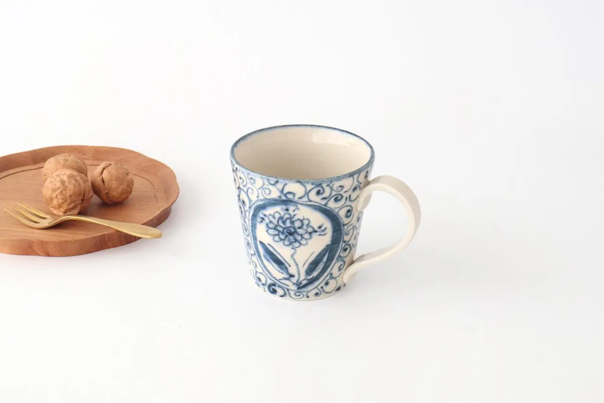 マグカップ 間取花 陶器 藍安南 美濃焼