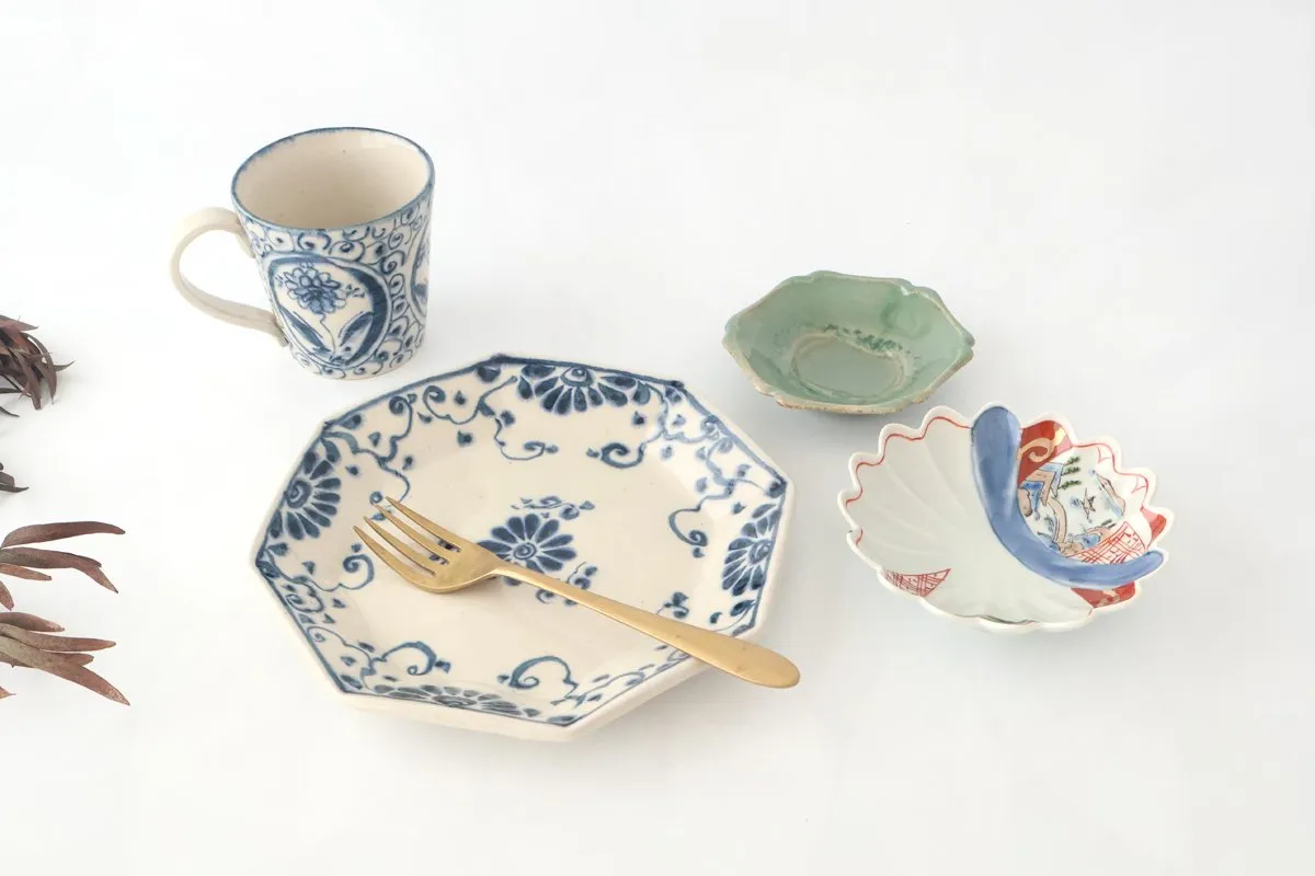 - 1.6 マグカップ 間取花 陶器 藍安南 美濃焼