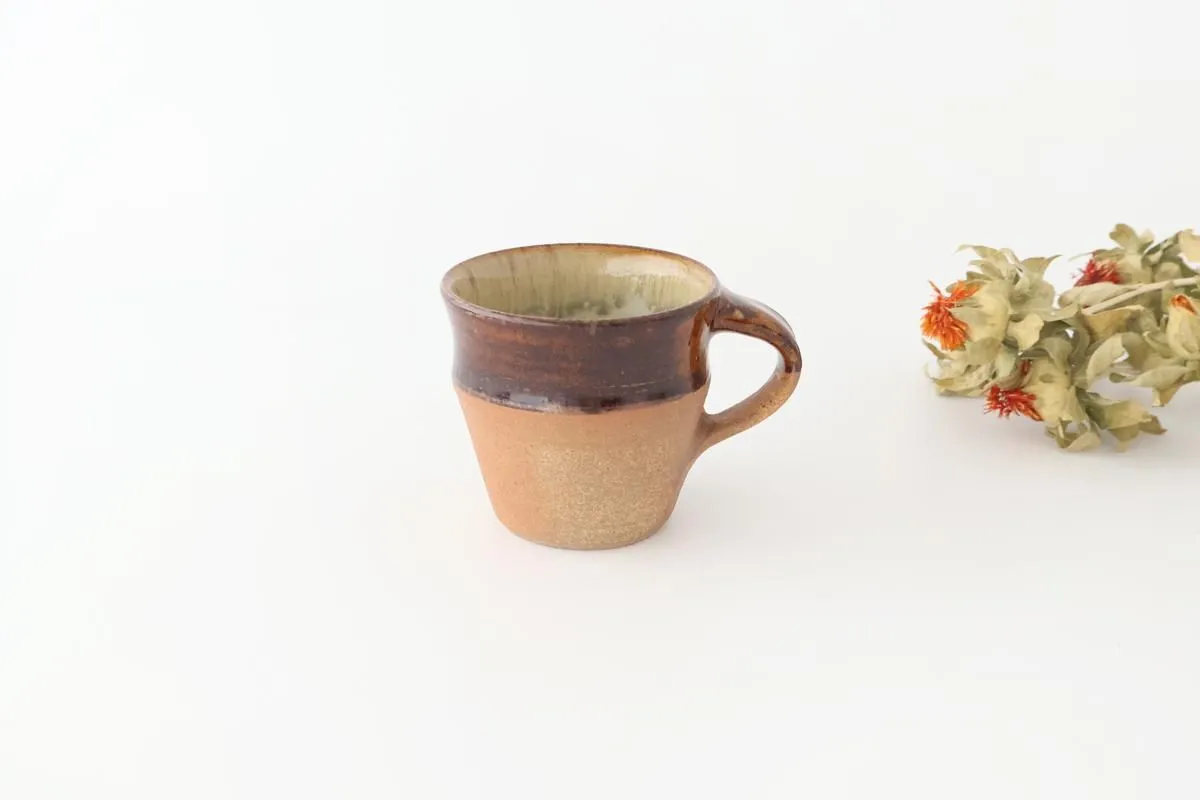 飴釉と焼き締めの淡いベージュが味わいのあるマグカップ。