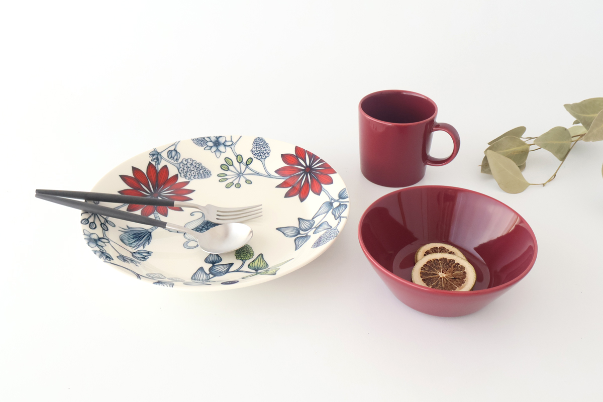 26cmプレートに、深みのある色合いのティーマ ボウルとマグを合わせた華やかな組み合わせ。