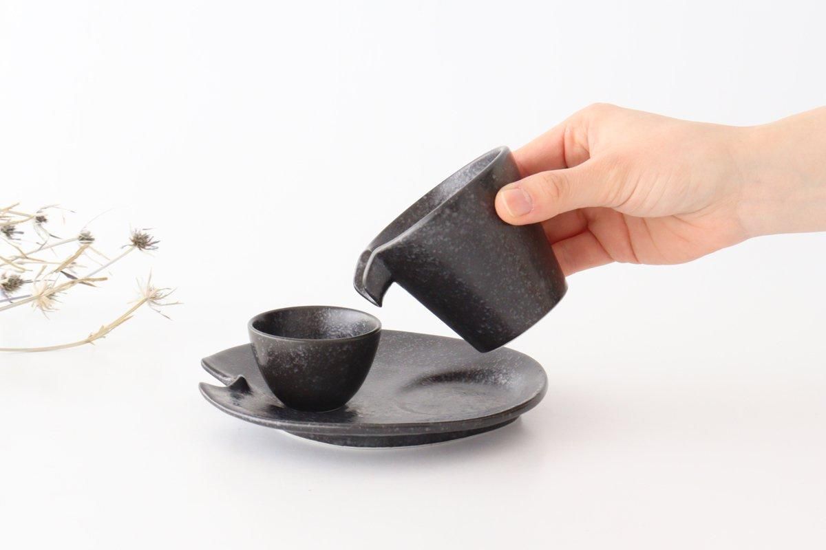 少し光沢のあるブラックに、ランダムに施された釉薬が夜空のよう。
