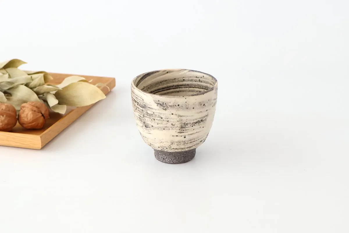 白とグレーが混ざった、マーブル柄のような湯呑み。