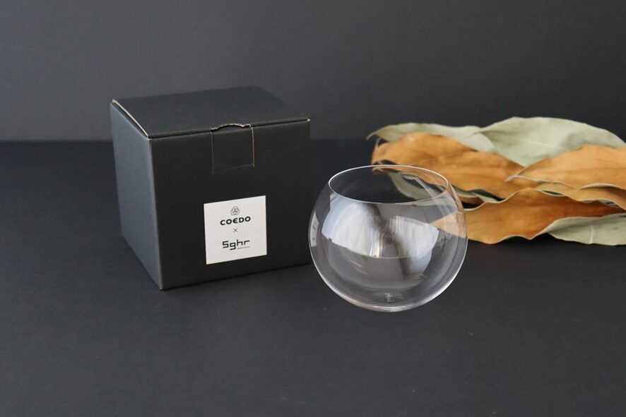 埼玉県川越の「COEDO」ブルワリーとコラボした、なんともユニークなフォルムのグラスです。