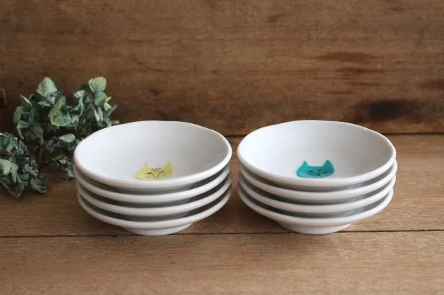 猫の顔がカラフルに描かれた、豆皿のセットです。