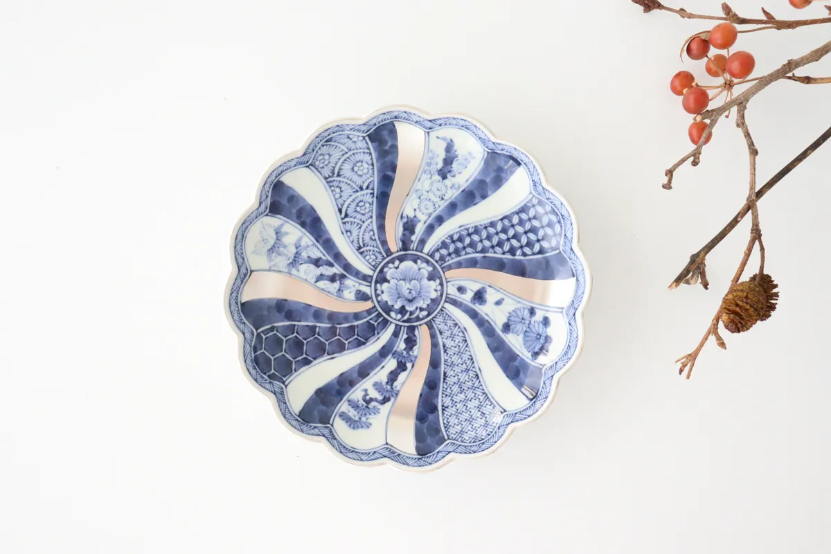 染付のブルーに銀彩がアクセントになった華やかなうつわ。