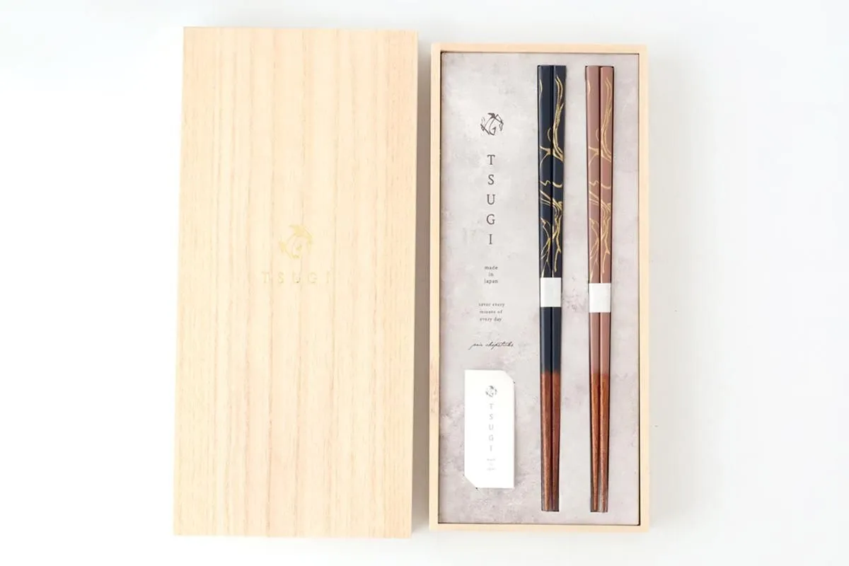 日本伝統のうつわの修復技法である「金継ぎ」をモチーフにした、エレガントなデザインのお箸。