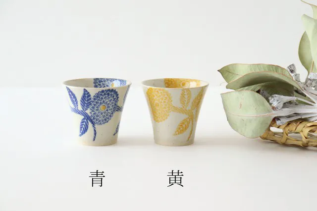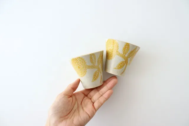 ダリアの花が大胆に描かれたミニカップです。