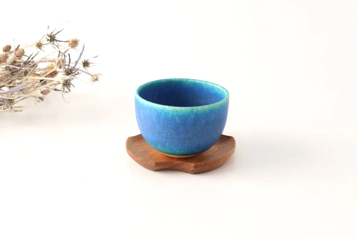 鮮やかなターコイズブルーの湯呑み。